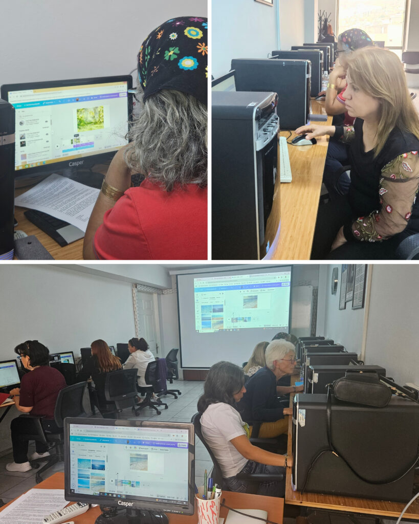 Ege Kadın Buluşması ve Çiğli Belediyesi işbirliğinde yürütülen “CANVA Tasarım Atölyesi’nin 18. 21-28 Nisan 2025 tarihinde Çiğli Belediyesi Prof. Dr. Nermin Abadan Unat Kadın Yaşam Merkezi’nde gerçekleştirildi.